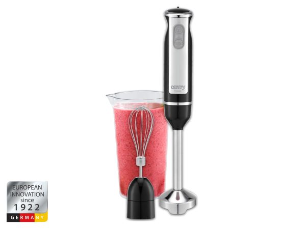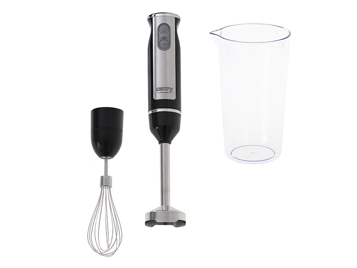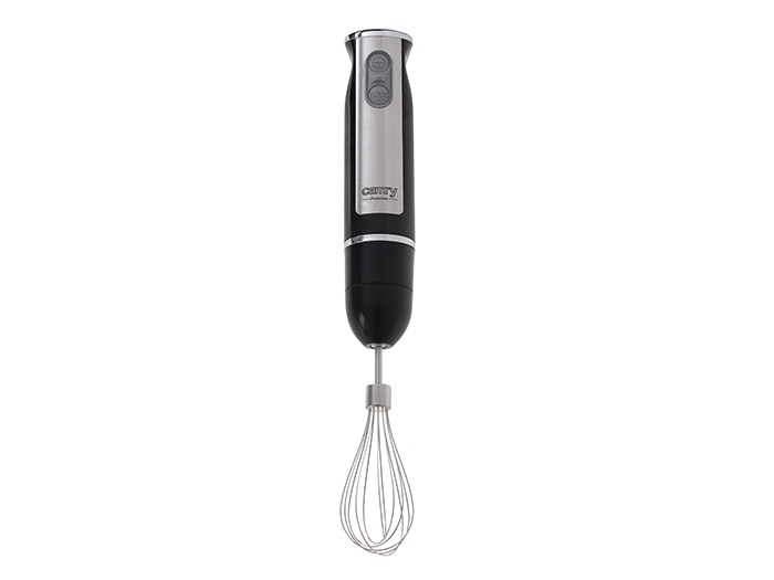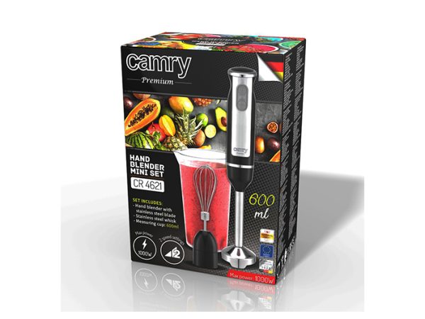 Blenderul de mana Camry este fiabil si silentios, motorul sau profesional cu o putere maximala de 1000 W! Si una nominala de 600 W il face instrumentul perfect pentru amestecare pe termen lung. Pentru a obtine rezultate excelente, aceasta unitate dispune de reglare electronica cu 2 viteze, pentru a permite trecerea fara probleme de la o viteza mai putin intensa la o viteza mare, fara intreruperi. Tija de imersie din otel inoxidabil este echipata cu un set special de taiere cu patru lame: foarte usor de dezasamblat pentru o curatare convenabila, poate fi inlocuit cu telul inclus, ideal pentru baterea oualor in cateva secunde.