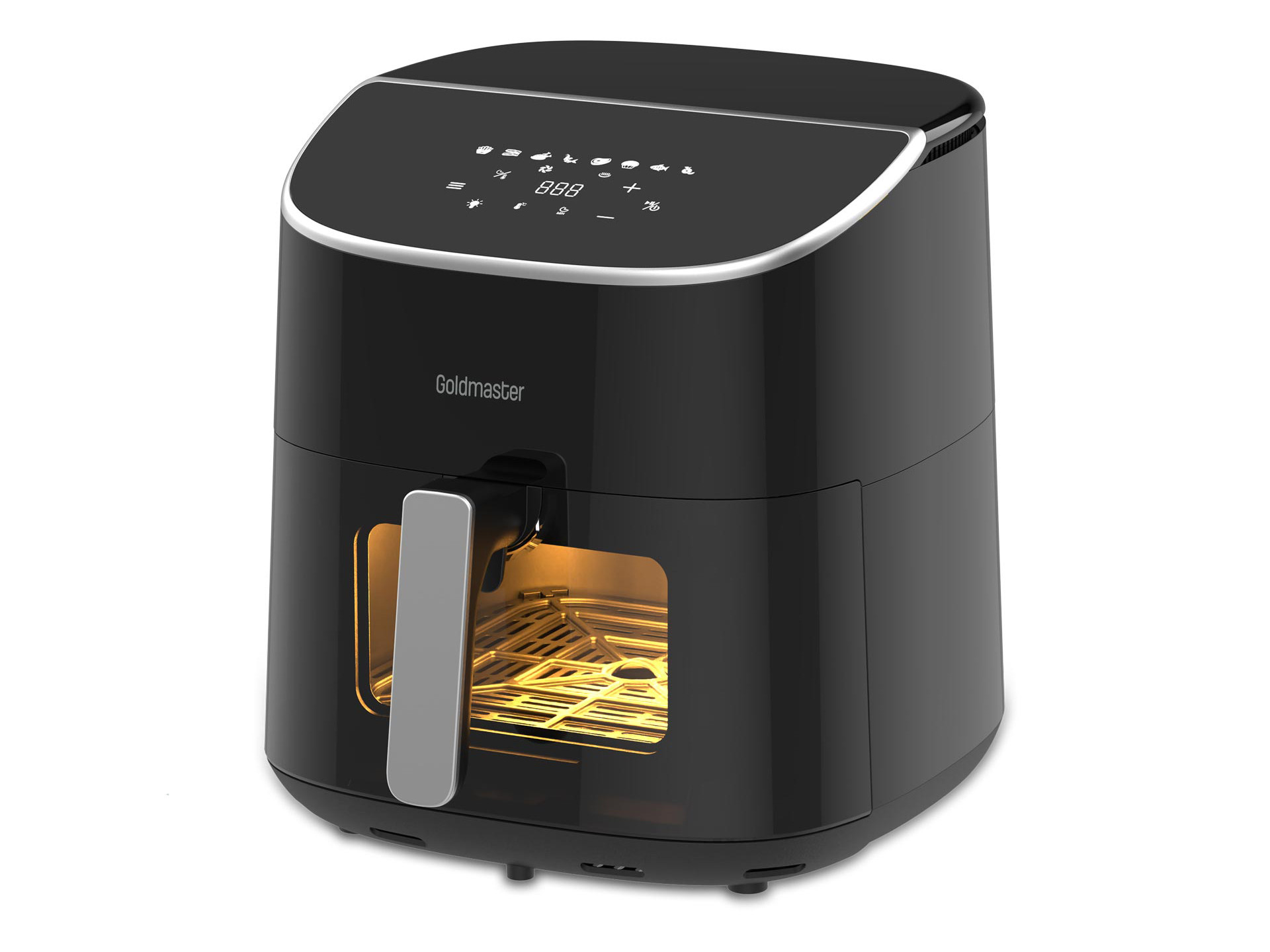 Goldmaster FRYMATIC este echipata cu un ecran tactil, oferind un control facil al setarilor, iar suprafata antiaderenta si fereastra de vizualizare a procesului de gatire aduc un plus de confort. Functia de oprire automata, manerul care ramane rece si picioarele antiderapante asigura siguranta in utilizare, iar iluminarea interioara permite monitorizarea gatitului. Friteuza ofera, de asemenea, moduri speciale pentru prepararea iaurtului si uscarea alimentelor, cu un timer reglabil pana la 24 de ore.