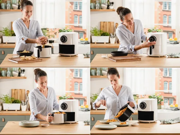 Aceasta friteuza cu aer cald nu este doar pentru cartofi prajiti. Poti gati carne, legume, peste sau chiar deserturi. Aerul cald circula uniform si pastreaza aroma, rezultand preparate crocante si sanatoase, intr-un timp scurt.