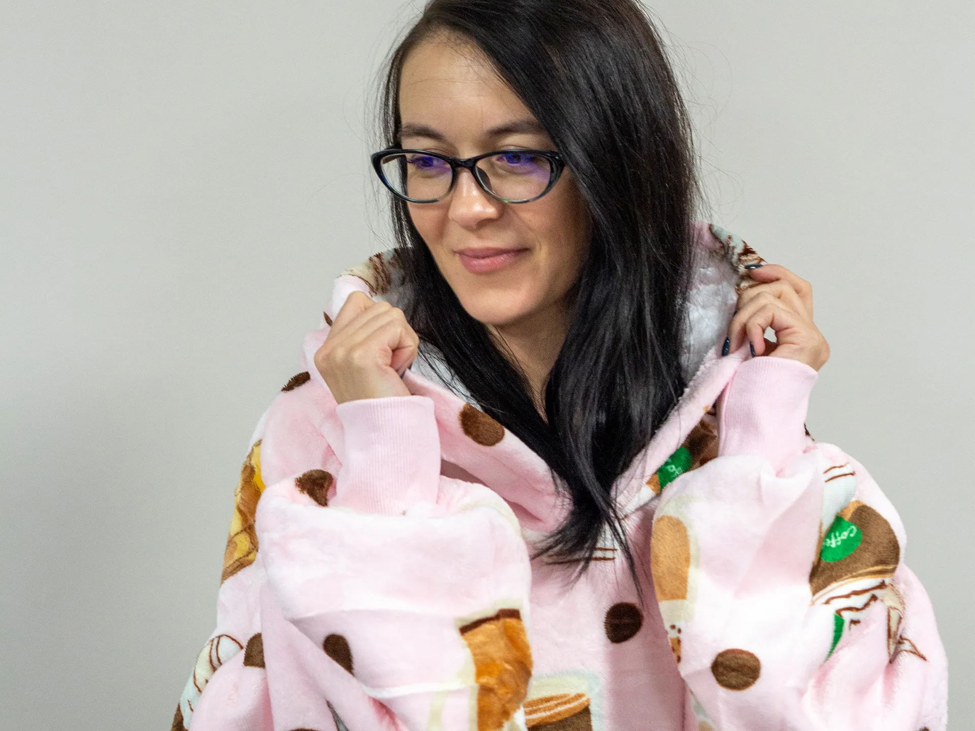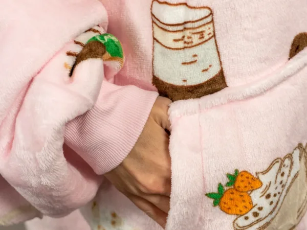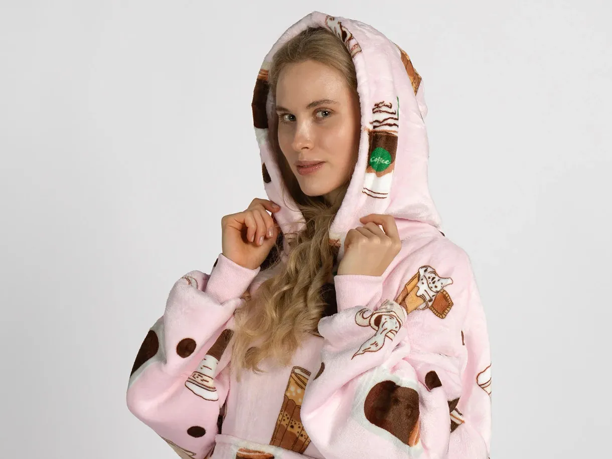 Hanorac cu glugă Vita este soluția modernă pentru cei care își doresc căldură și confort în orice anotimp. El combină funcționalitatea unei pături călduroase cu practicitatea unei haine, oferind o senzație unică de relaxare. Stratului interior îi revine rolul de a păstra căldura corpului, iar țesătura moale îmbrățișează delicat pielea. Datorită glugii spațioase și mânecilor lungi, te poți înfășura complet fără să îți limitezi mișcările.