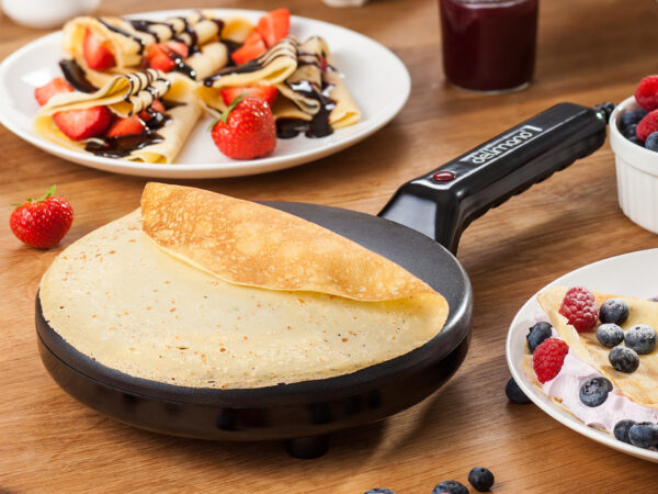 Cu aparatul de clatite Delimano Utile, puteti face clatite perfecte in doar cateva secunde, incantand familia si prietenii cu delicii delicioase. Umpleti-le cu inghetata, ungeti-le cu dulceata, miere, sirop de artar sau ciocolata topita pentru un desert pe care invitatii il vor aprecia.