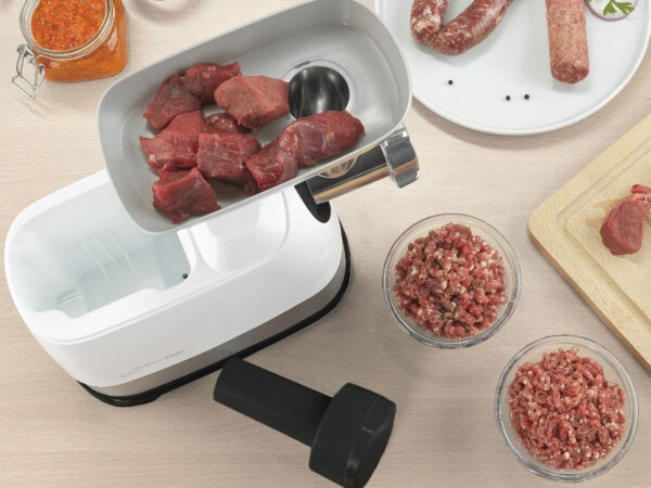 Are si functie de reverse, care te ajuta daca alimentele se blocheaza. Nu este nevoie sa demontezi aparatul — doar activezi sensul invers. In plus, aparatul proceseaza pana la 1,5 kg de carne pe minut. Este solutia ideala pentru gratare, mese in familie sau weekend-uri culinare.