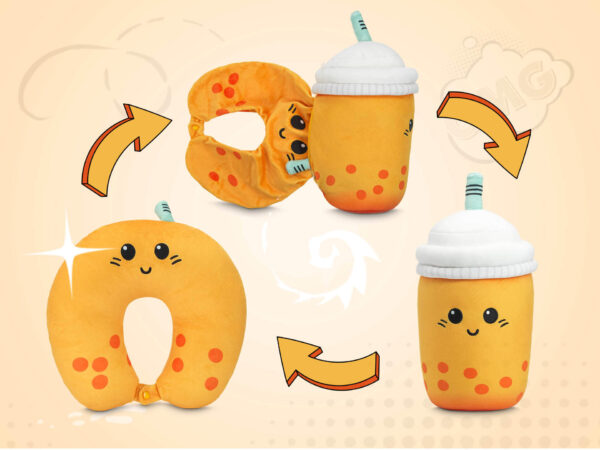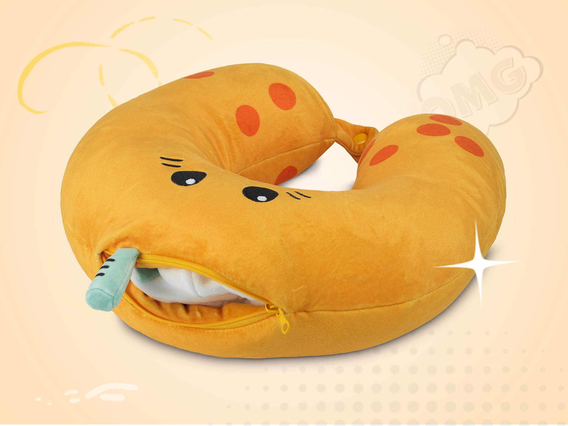 • Design 2in1: Se transforma din jucarie in perna pentru gat in cateva secunde;