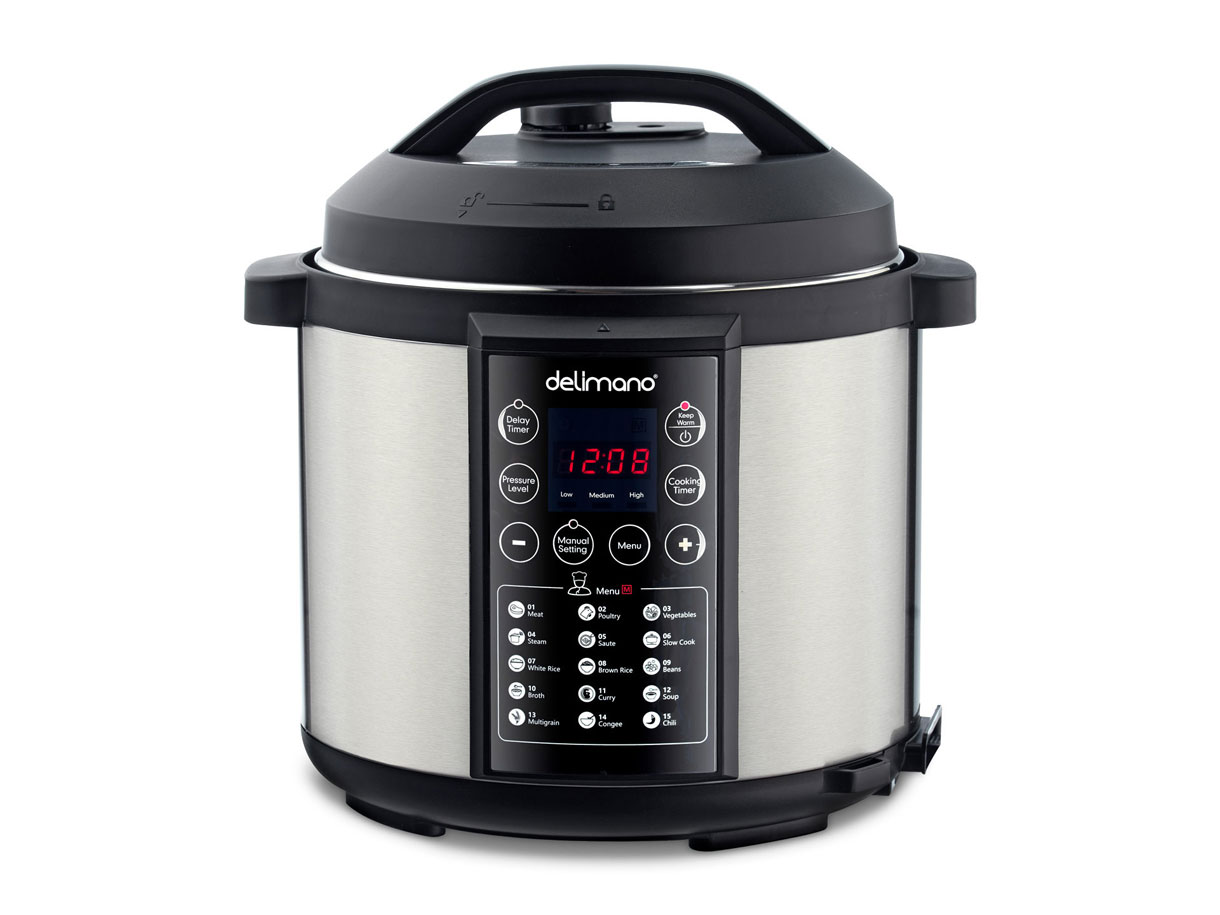 Oala sub presiune electrica Delimano te ajuta sa gatesti mai rapid, mai simplu si mai sigur. Datorita programelor automate si sistemului inteligent de control, te bucuri de mancare de casa fara efort. In plus, inlocuieste mai multe aparate, inclusiv o plita si un multicooker.