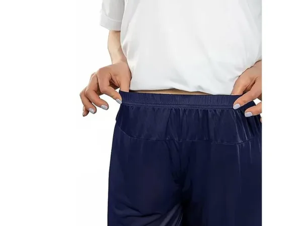 Pantaloni pentru dame „Breeze” sunt confecționați din mătase artificială (poliester) – un material ușor și respirabil, care permite circulația aerului și nu limitează mișcarea. Sunt disponibili în mărime XL (talie 98–110 cm, șolduri 124–136 cm). Lungimea interioară a cracului este 67 cm la XL.