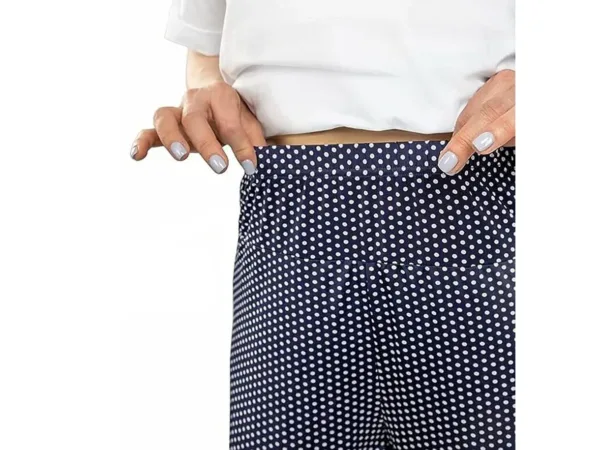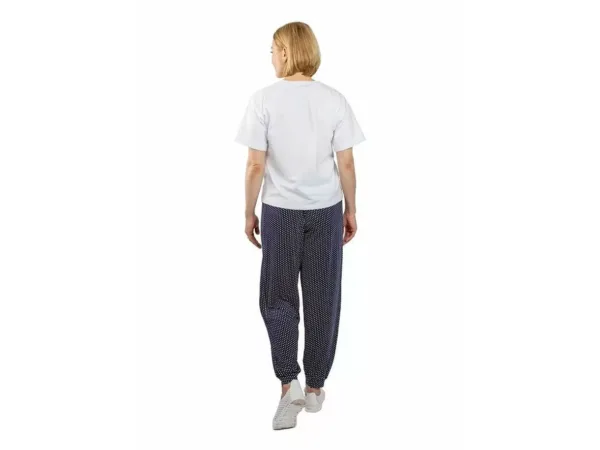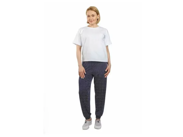 Modelul se combină perfect cu tunici, bluze, topuri sau cămăși. Arată bine atât cu pantofi cu toc, cât și cu încălțăminte cu talpă joasă. Banda elastică lată din talie nu strânge, asigurând o fixare perfectă, iar manșetele lejere oferă un plus de libertate și stil.