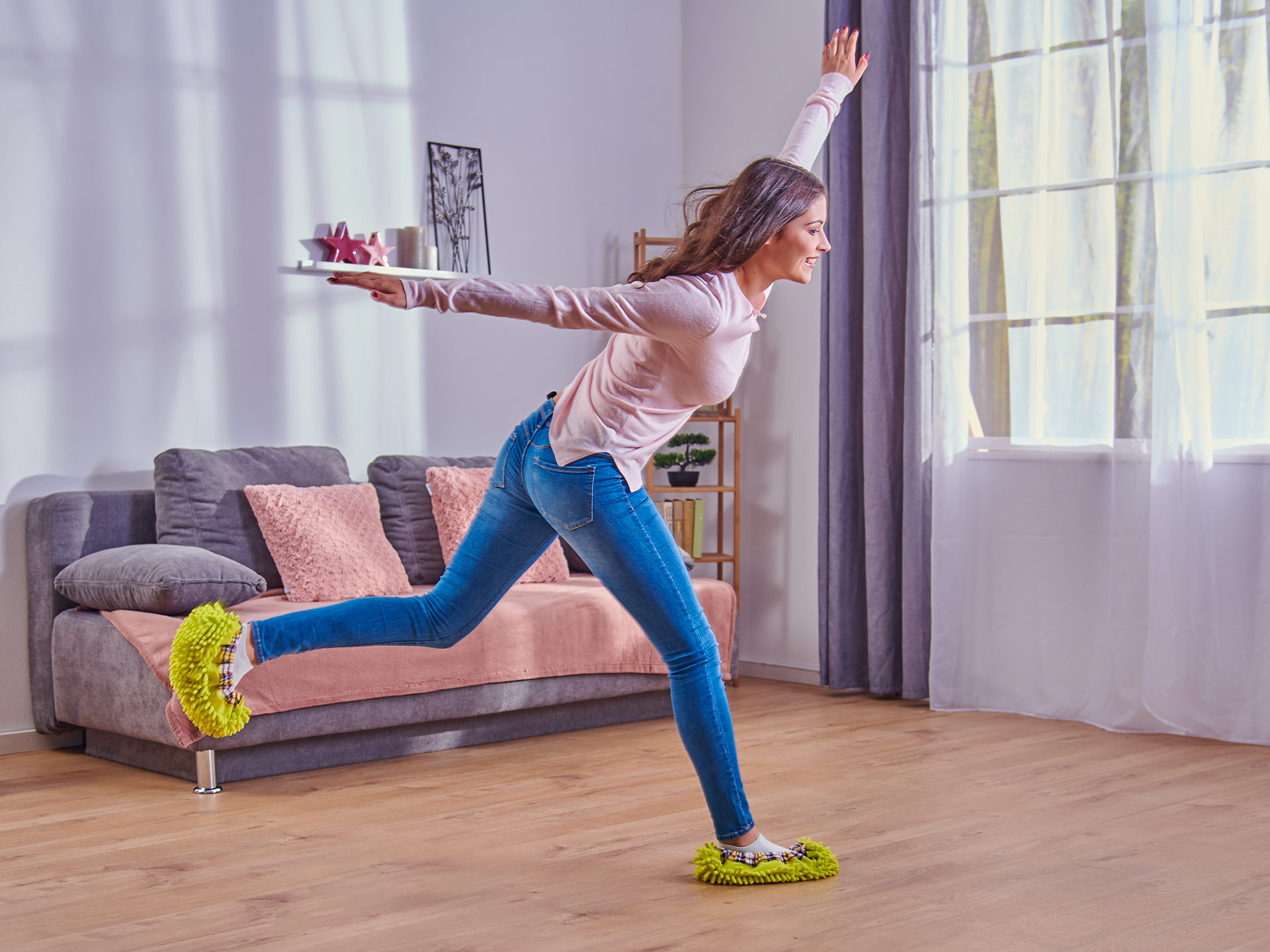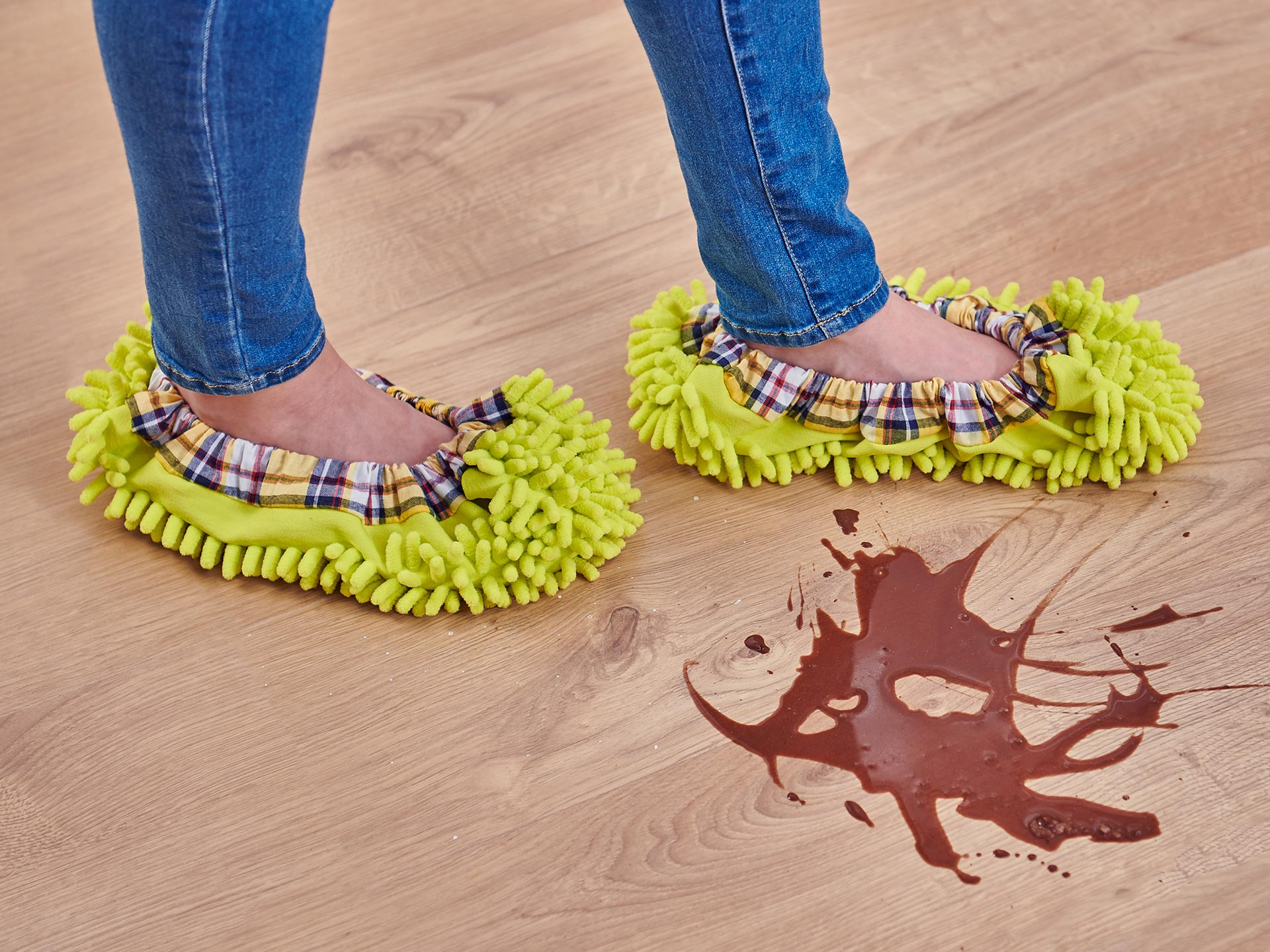 Incaltati papucii cand podeaua este proaspat spalata pentru a preveni lasarea urmelor sau purtati-i peste incaltamintea cu care iesiti afara pentru a evita murdaria, zgarieturile si petele atunci cand intrati in casa. Puneti-i pe maini si folositi-i ca o carpa de curatat suprafetele, precum mesele de bucatarie, de birou, ferestrele, oglinzile si chiar suprafetele din lemn.