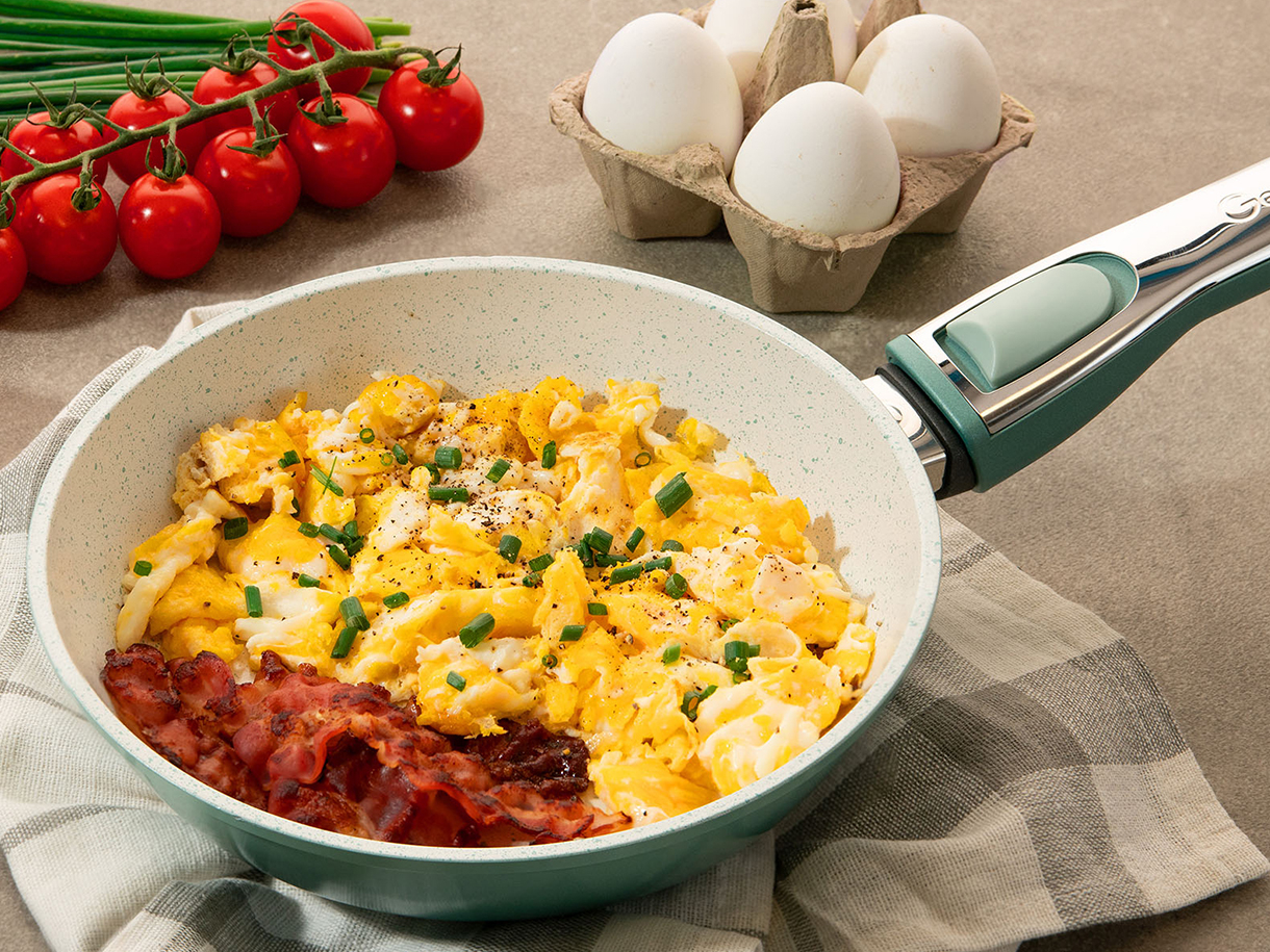 Setul Cerafit Revolution dispune de un strat antiaderent de ultima generatie, oferind proprietati antiaderente cu pana la 300% mai bune in comparatie cu alti producatori. Acest lucru permite gatitul fara uleiuri sau grasimi suplimentare, facand preparatele mai sanatoase. In acelasi timp, stratul ceramic nu contine substante chimice nocive, precum PFAS.