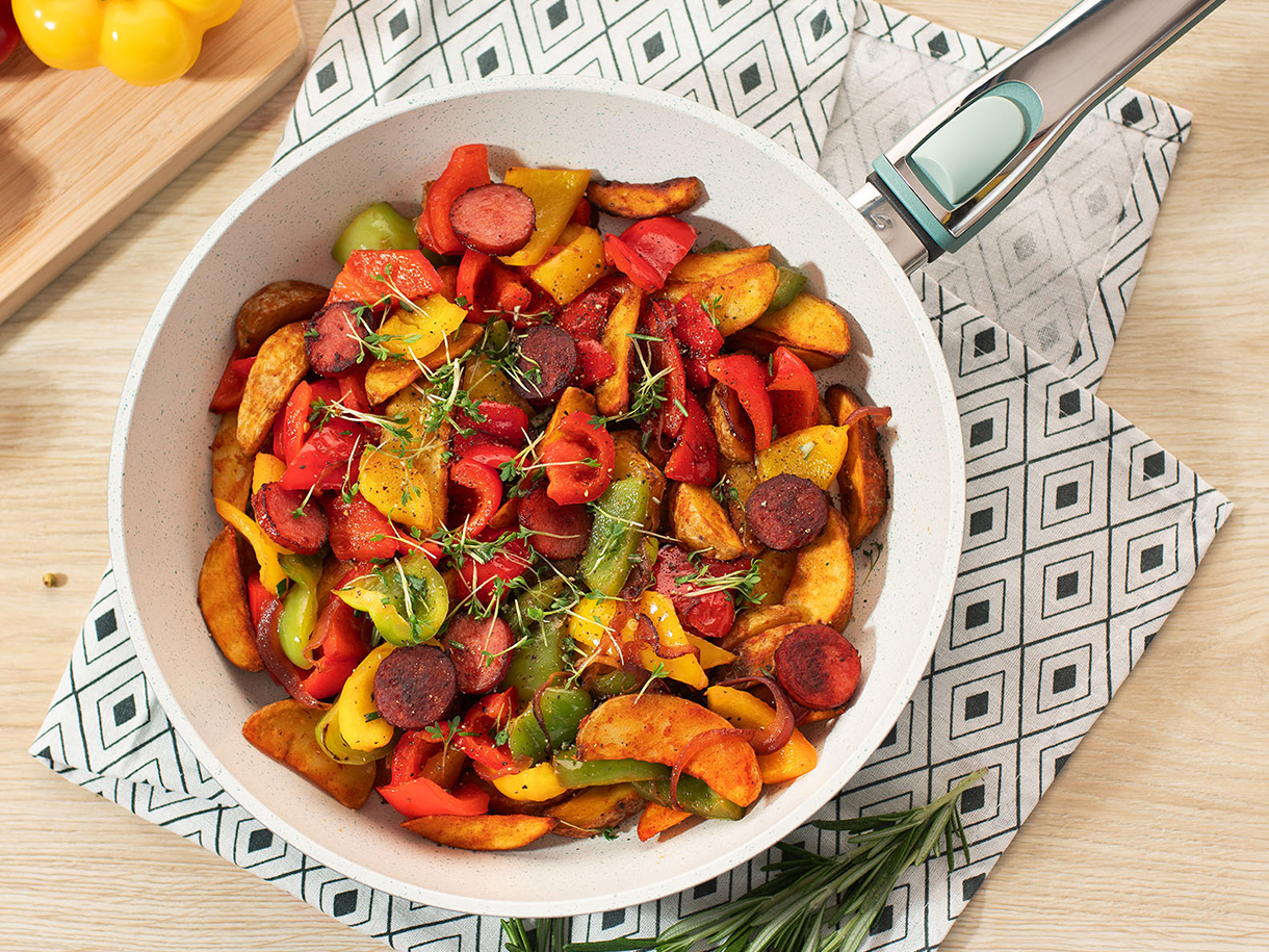 Tigaile sunt echipate cu tehnologia inovatoare ThermoSpeed, care distribuie caldura uniform pe toata suprafata. Preparatele se gatesc mai rapid si cu un consum redus de energie. In plus, tigaile pastreaza caldura chiar si dupa ce plita este oprita, continuand gatitul alimentelor. Acest lucru nu doar accelereaza procesul de gatit, ci il face mai economic.