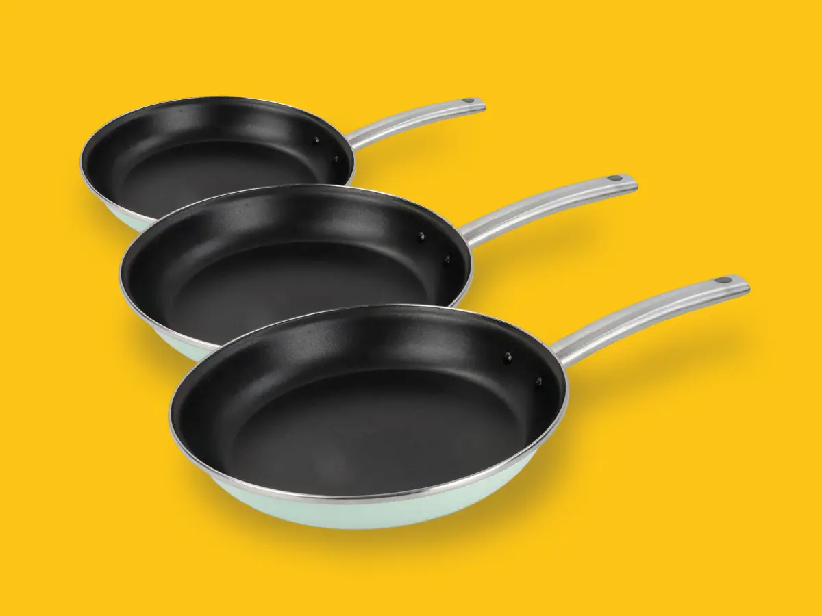 • Trei tigăi Delimano Nordic Mint de dimensiuni diferite – soluție universală pentru orice tip de preparat;