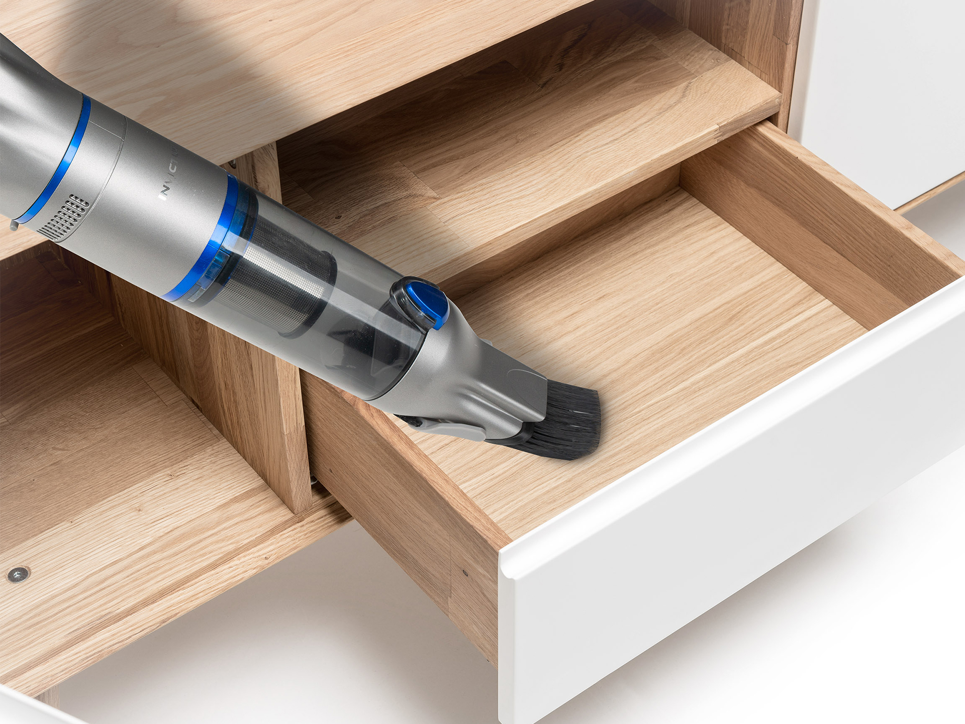 De la aspirator de mana la aspirator vertical cu un singur clic usor! Setul revolutionar de podea va ofera libertate absoluta atunci cand faceti ordine. Transforma puternicul INVICTUS ONE 2.0 intr-un aspiratoare cu container pentru a curata fiecare colt al casei tale. O duza speciala pentru podea va va ajuta sa ajungeti sub cel mai jos mobilier si sa aspirati. Tubul de aspiratie (aprox. 65 cm) poate fi combinat cu toate celelalte accesorii INVICTUS ONE 2.0 pentru a ajunge fara efort in cele mai indepartate colturi. Capul de perie mic, cu peri fine, indeparteaza chiar si cele mai mici particule de praf pentru o curatare deosebit de intensa a suprafetelor dorite.
