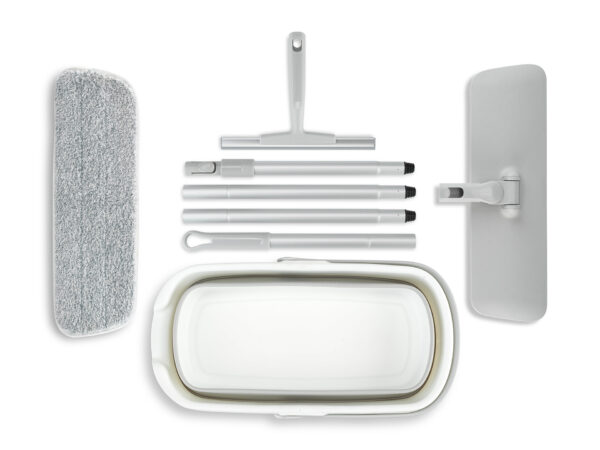 Setul pentru curatenie Rovus este creat pentru a curata cu minim efort si detine tot ceea de ce este nevoie pentru a mentine curata podeaua, geamurile, precum si alte suprafete dure.