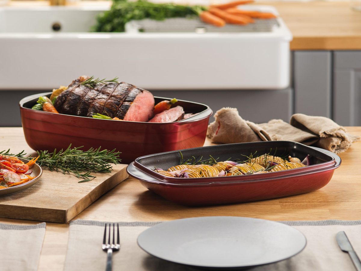 • Tava adanca pentru rulada din carne, chifle sau lasagna.